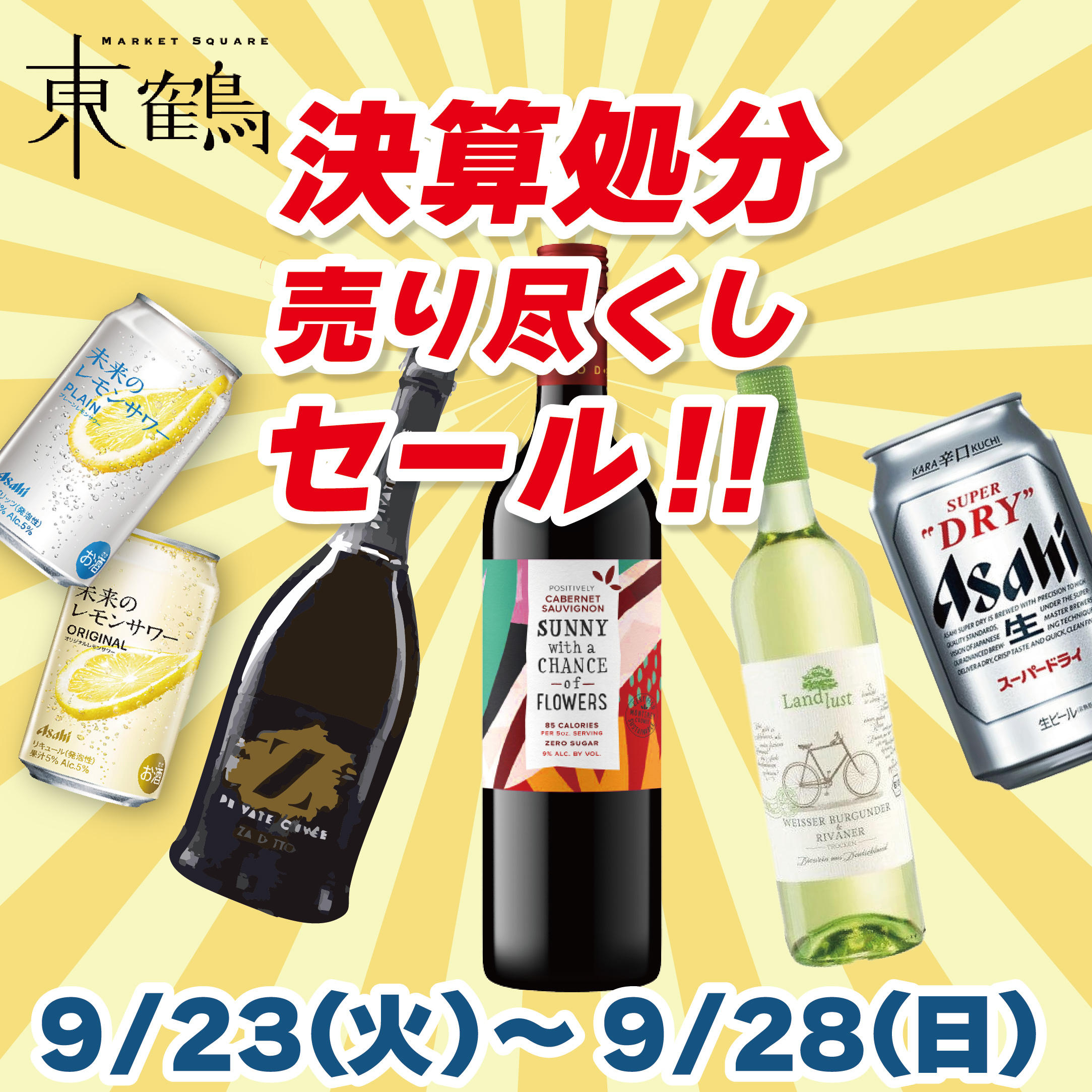 東鶴マーケットスクエアです🍻🥂🍷🥃🍸🍹🍾