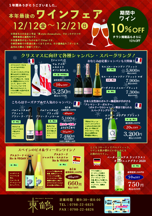 酒style-AzumaZuru(0798-85-5203)または東鶴本店(0798-22-6825)までご連絡ください。