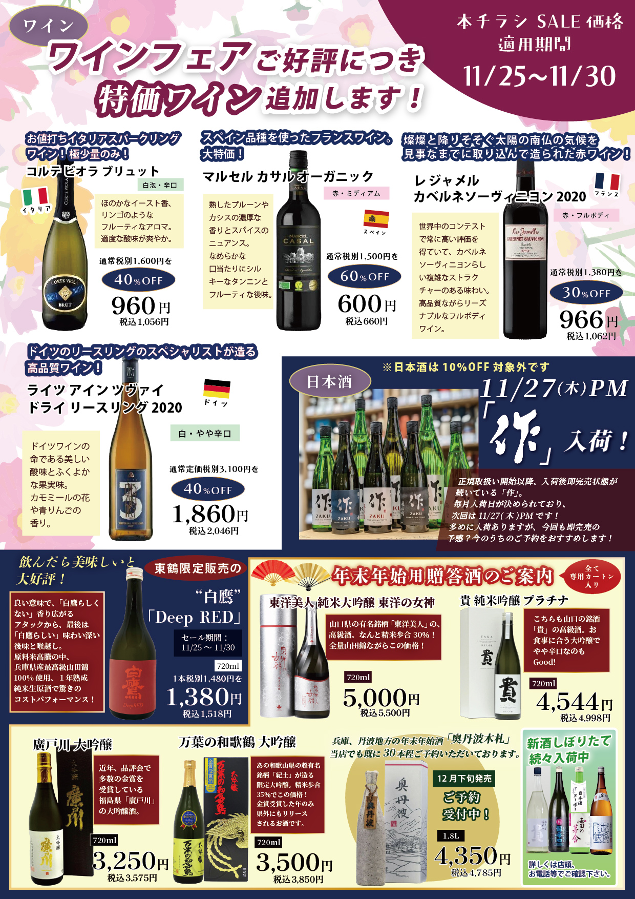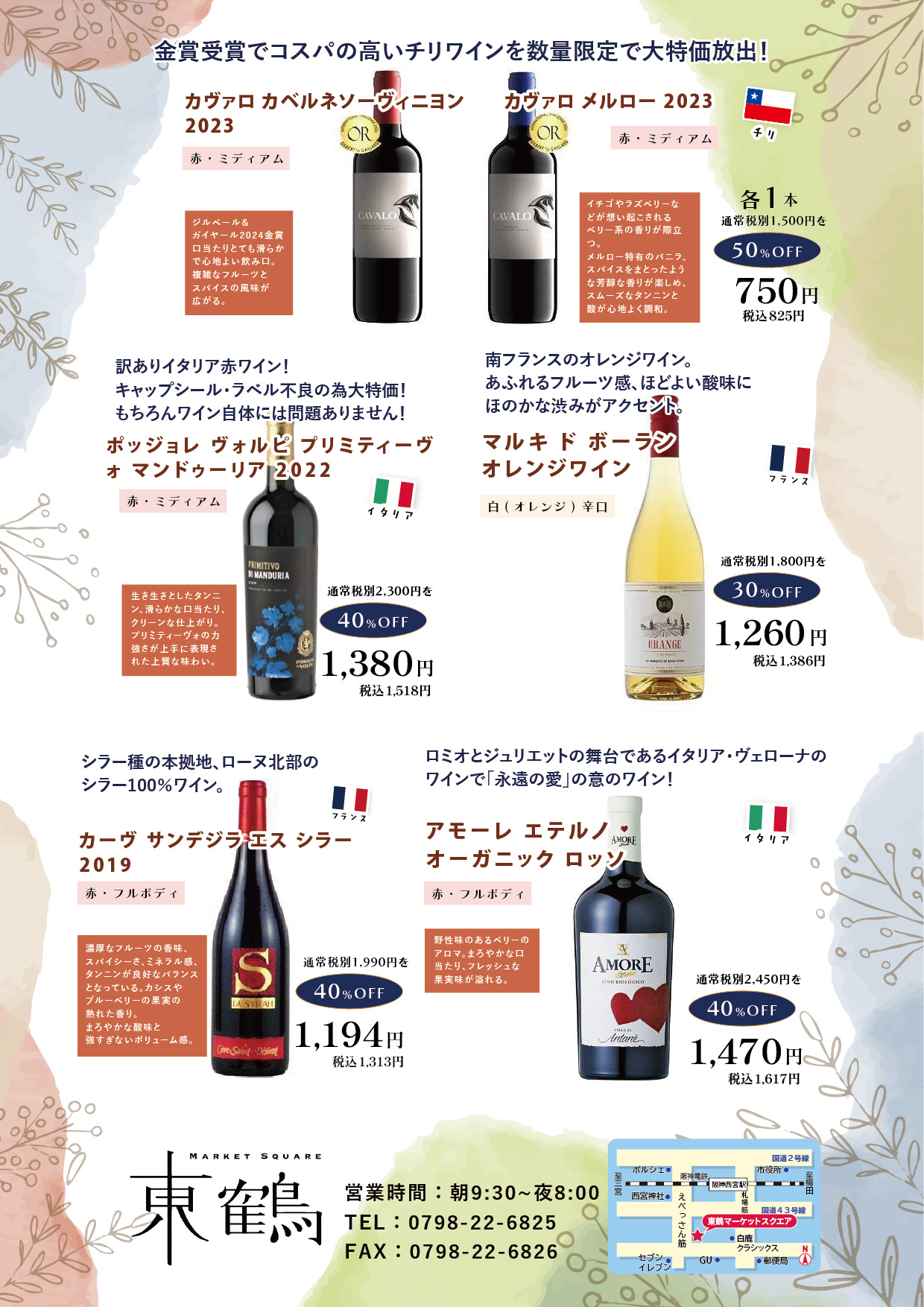 ※ご希望の方にはワインの特売情報掲載の印刷チラシをご来店時にお渡しいたします!