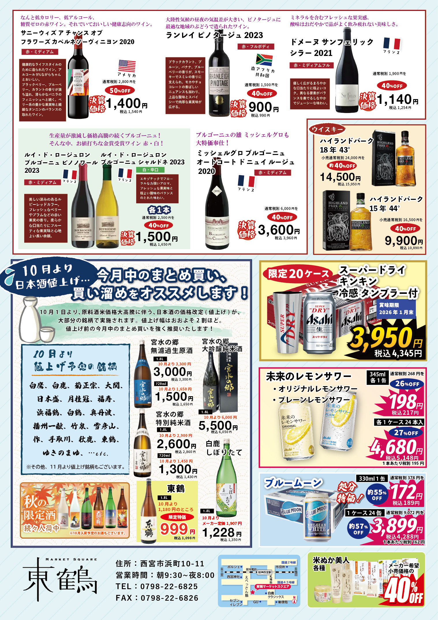 ワインや、缶ビール、缶チューハイ等を決算価格の大特価でご用意しておりますのでお見逃しなく!
